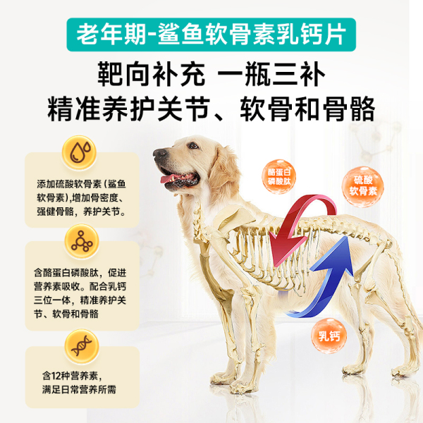美里美亚猫狗钙片鲨鱼软骨素健骨关节补钙幼犬大中小型犬狗狗专用