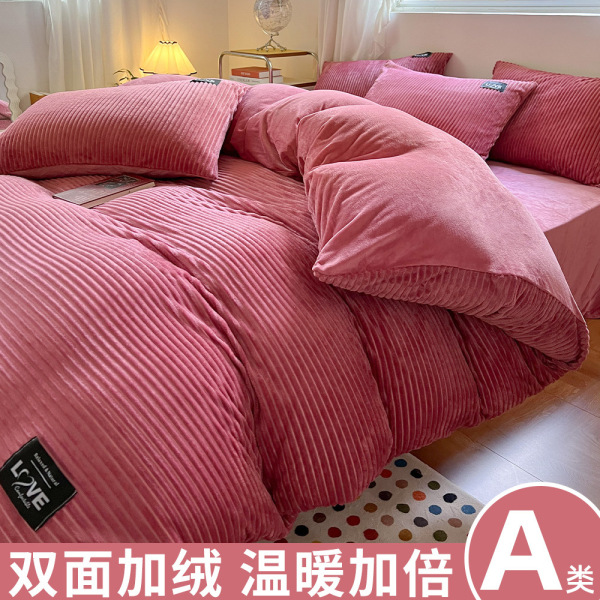 冬季牛奶绒四件套a类珊瑚绒法兰绒加绒加厚床上三件套