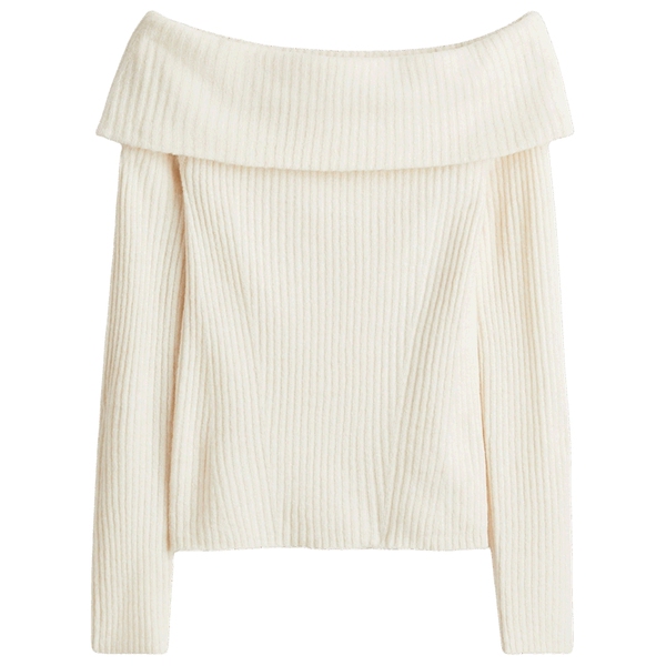 HM女装毛针织衫2025年冬季新款罗纹一字肩保暖气质上衣1293121