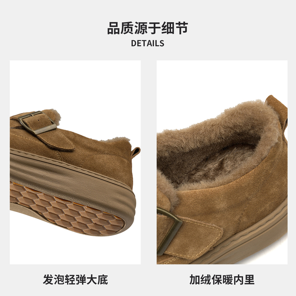 奥康 男鞋2025冬季新款勃肯鞋加绒保暖时尚潮流休闲一脚蹬工装鞋