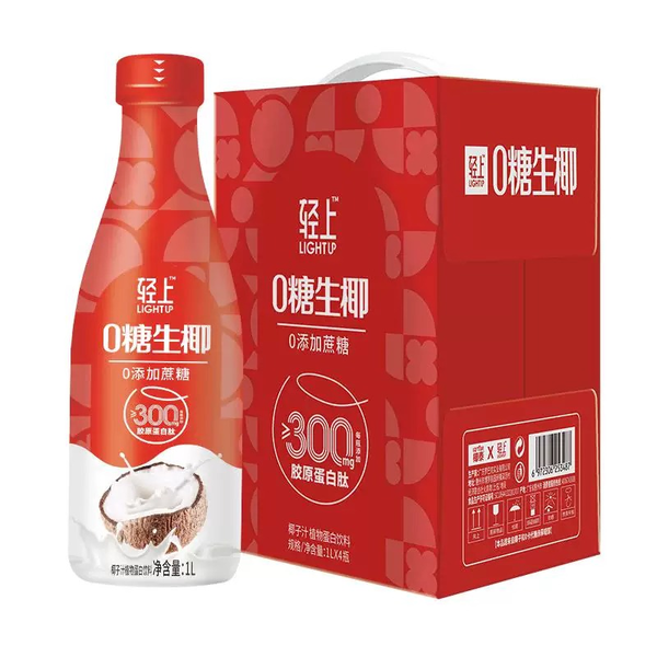 礼盒轻上0糖生椰汁,卷后17.6元下拉淘金币后16.56,轻上0糖生椰椰汁椰子汁饮品1L大瓶装植物蛋白饮品饮料