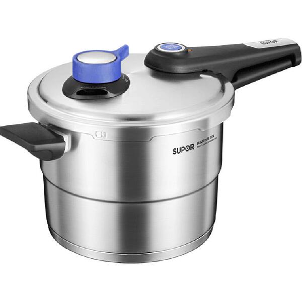 苏泊尔304不锈钢高压锅家用6L旋钮式蓝眼调压燃气电磁炉通用新款