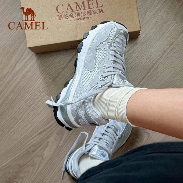 骆驼慢跑鞋漫游女运动鞋透气老爹鞋透气银灰色复古休闲鞋贝果鞋子