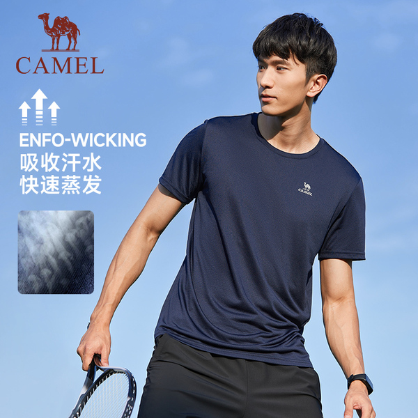 骆驼运动速干衣T恤男夏季薄款透气爸爸户外跑步健身短袖体恤上衣