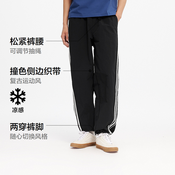 森马休闲裤男复古运动风宽松直筒裤凉感2025夏季新款长裤撞色潮流