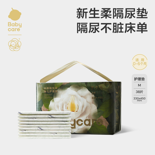 Q卜!下拉淘金币到手23.32【页面价44.9-秒杀限时补贴18-淘金币3.58】,消费券后20.41,单片0.5起!!babycare山茶新生柔婴儿护理垫一次性隔尿垫,防水透气,添加山茶植萃,摸着软,躺着润,30倍*吸收大尿量秒干爽,会呼吸的隔尿垫!材质放心,专为新生儿设计!