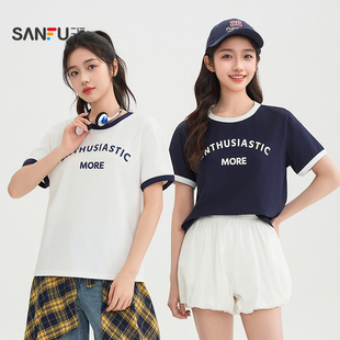 三福新款夏季简约撞色短款T
