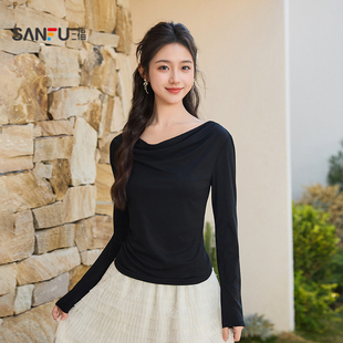三福新款褶皱收腰长袖T