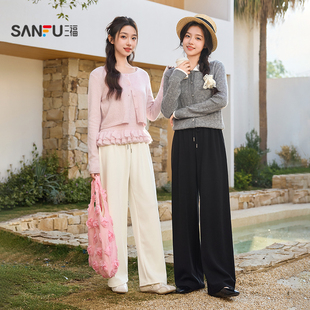 三福休闲裤女2026春季宽松阔腿裤直筒长裤