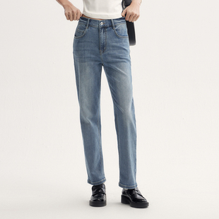 太平鸟广角裤阔腿大直筒牛仔裤女